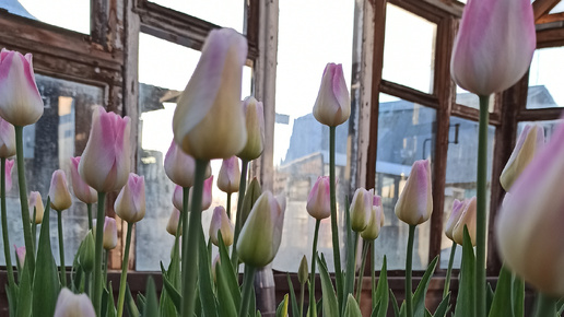 Срезала свои первые тюльпанчики в 2026 году! Они росли у меня в теплице. Она у меня не отопливаемая. Крыша не раздвигается тоже. Снега зимой в теплице не было. Не замёрзли, выжили...