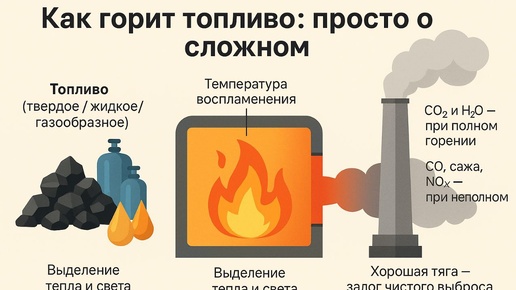 2. Неполное горение — когда из-за нехватки кислорода образуются CO (угарный газ), сажа и другие недоокисленные продукты...