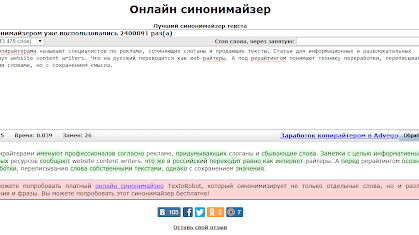 В современном мире, где контент играет важную роль, важно уметь разнообразить текст и избегать повторов. Одним из инструментов, который помогает в этом, является синонимайзер. Ниже мы подробно расскажем, что это такое и как он работает. 🖍️ Синонимайзер — это программа или онлайн-инструмент, предназначенный для автоматической замены слов в тексте на их синонимы. Его основная задача — сделать текст более разнообразным, улучшить его читаемость и избежать повторов одних и тех же слов. Принцип работы...
