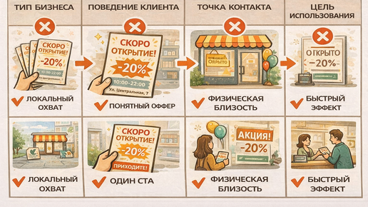Открытие новой точки почти всегда сопровождается ожиданиями, но не всегда результатом. Бизнес рассчитывает на поток, но реальность часто оказывается другой: люди проходят мимо, не понимают, что открылось, и не заходят. В этом кейсе разберём, как грамотно подготовленные листовки помогли привлечь клиентов на открытие и создать первый стабильный поток без масштабной рекламы. Открывалась новая офлайн-точка в спальном районе. Формат — услуги для населения. Район жилой, с постоянным пешеходным трафиком, но без ярко выраженных торговых якорей...