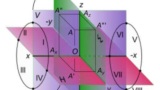 Положение точки в пространстве (а следовательно, и любой геометрической фигуры) может быть определено, если будет задана какая-либо координатная система отнесения. Положение точки в пространстве, геометрической фигуры наиболее удобно для фиксирования и выявления ее формы по ортогональным проекциям в декартовой системе координат, состоящей из трех взаимно перпендикулярных плоскостей. При ортогональном проецировании точки А получаем: А`– проекция точки А на плоскость H (горизонтальная проекция точки...