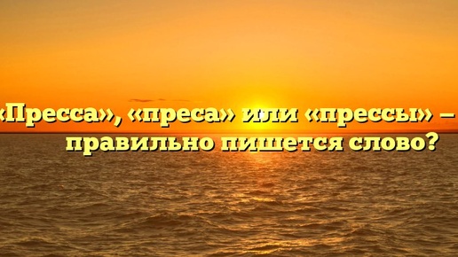 ? Если не знаете, как правильно – «пресса», «преса» или «прессы», необходимо руководствоваться орфограммой № 2. Как пишется правильно: «пресса», «преса» или «прессы»? Безошибочно написаны первый и третий варианты. Какое правило применяется? «Пресса» представляет собой неодушевленное нарицательное имя существительное первого склонения женского рода. Лексема иностранного происхождения, калька французского существительного presse, произошедшего от глагола presser – «давить, печатать»...