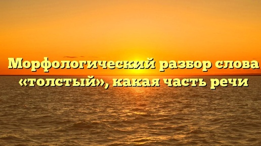 Часть речи слова «толстый»: морфологический разбор Существует множество слов, которые мы используем в нашей речи каждый день. Каждое из них относится к определенной части речи. Сегодня мы рассмотрим морфологический разбор слова «толстый» и определим, к какой части речи оно относится. Морфологический анализ слова «толстый» показывает, что это прилагательное. Прилагательное – это слово, которое обозначает свойство или признак предмета или лица и, как правило, является определением для существительного...