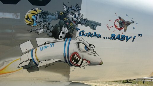 Знаете, почему Томкэт назвали именно так и откуда взялось его знаменитое лого в виде кота с револьвером? Grumman любили давать своим самолетам кошачьи имена (Wildcatt, Bearcat, Hellcat) и F-14 не стал исключением. Вот что об этом рассказывает Джим Родригез, сотрудник Grumman: “Логотип Томкэта появился в начале 70-х по просьбе Норма Гандиа, бывшего пилота Blue Angel (пилотажная группа в США, прим.пер.). Он попросил меня нарисовать кота с двумя хвостами в боксерских перчатках и плавках с шестизарядным пистолетом на боку...