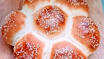 1. Тёплое молоко 100 мл. 2. Тёплая вода 100 мл. 3. Сахар 1 ст.л. 4. Соль 1,5 ч.л. 5. Яичный белок 1 шт. 6. Желток чтоб смазать сверху 1 шт. 7, Дрожжи сырые 20 гр. 8. Мука 420 гр . 9. Подсолнечное масло 50 мл. Замешать и оставить на 30 минут. Тесто делим на две ровные части...