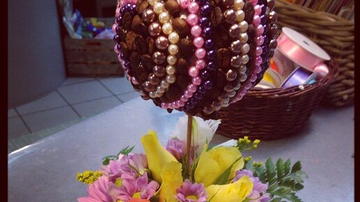 Небольшая композиция для девочки. А вам нравится такая работа? Основа этого топиария была создать яркие акценты включая розовые тона. А вы знаете, что такое топиарий? Топиарий , его ещё называют «Европейским деревом» или «Деревом счастья»...