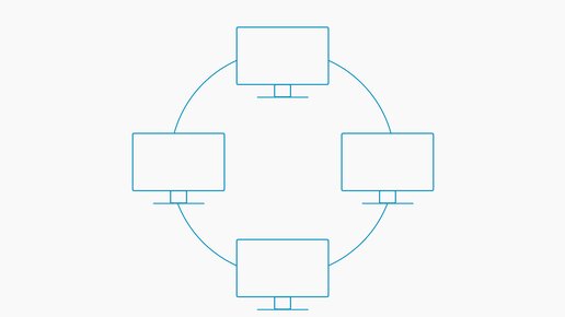 Loop network, Circular network Топология “кольцо” представляет собой структуру компьютерной сети, в которой каждый компьютер соединен линиями связи только с двумя другими: от одного он только получает информацию, а другому только передает. Это создает замкнутый круг обмена данными. На каждой линии связи работает только один передатчик и один приемник, что позволяет отказаться от внешних терминаторов. Работа в сети кольца основана на ретрансляции сигнала каждым компьютером, что делает затухание сигнала между соседними компьютерами несущественным...