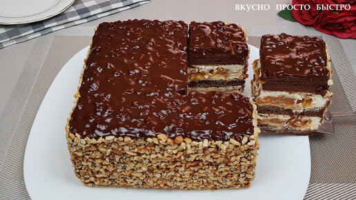 Популярный торт Сникерс. Простой рецепт шоколадного торта. Рецепт самого вкусного шоколадного бисквита