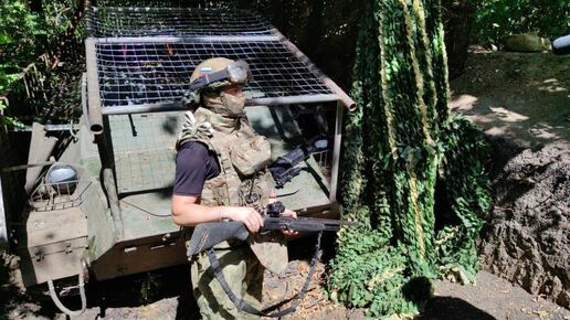 Экипаж тяжелой огнеметной системы ТОС-1А «Солнцепек» группировки войск «Восток» поразил опорный пункт противника, скопление личного состава и технику. Выполнив залп 220-миллиметровыми термобарическими реактивными снарядами по заданным координатам, команда перевела боевую машину в походное положение и покинула огневую позицию. Огнеметчики и подразделение, отвечающее за их безопасность, рассказали «Известиям» о своей боевой работе. Командир «Солнцепека» с позывным Борода из Забайкальского края, где его ждет семья: жена и трое детей...