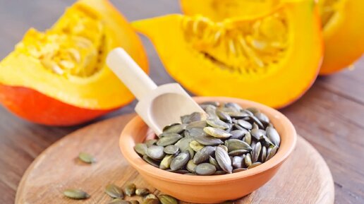 Перед употреблением любых новых для вас продуктов необходимо проконсультироваться со специалистом, возможны противопоказания Тыква — диетический продукт, богатый витаминами и микроэлементами. Очень полезной частью тыквы являются семечки. У них много применений. Их добавляют в различные блюда, а также потребляют жаренными. Масло из них является рекордсменом по содержанию полиненасыщенных жирных кислот. Содержание тыквенных семечек Семечки тыквы содержат магний, полиненасыщенные жирные кислоты, минералы и микронутриенты...