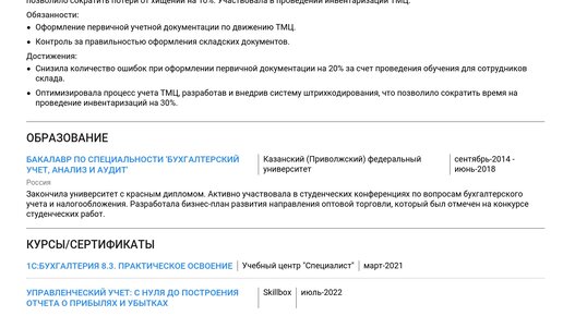 Пример резюме бухгалтера товарной группы 2025 - Как составить