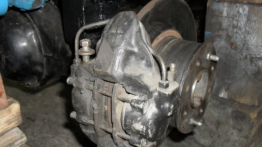 1. Переделка тормозов. При изготовлении трактора многое пришлось переделать. В том числе и тормоза. Изначально стояли Жигулевские тормоза. Сзади барабанные, спереди дисковые. Затем я их переделал. Сделал один тормозной цилиндр с суппортом и передним тормозным диском от Тойоты. Установил его на кардане заднего моста. Но поездил зиму. И решил переделать снова на четыре колеса вместо одного тормоза на трансмиссии. На задний мост решил поставить передние дисковые тормозные механизмы от Ваз-2106. Для этого пришлось переточить полуоси...