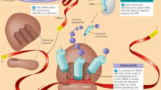 😍 Транскрипция - это синтез предшественника и-РНК (пре-и-РНК) на матричной цепи ДНК в участке гена. 😍 Процессинг (сплайсинг) - это созревание и-РНК, т.е. вырезание интронов (некодирующих участков) и сшивание экзонов (кодирующих участков) в ядре клетки. Эти процессы происходят в ядре клетки и необходимы для образования и-РНК, которая далее выходит в цитоплазму через ядерные поры, связывается с субъединицами рибосомы и вовлекается в процесс трансляции. О трансляции напишу отдельную статью (пишите в комментариях, если хотите такое)...