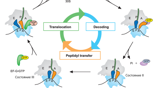 То, что обычно подразумевается под синтезом белка, происходит на стадии трансляции. Трансляция протекает на рибосомах при непосредственном участии иРНК, тРНК, трансляционных факторов, молекул АТФ. Но, прежде чем говорить о трансляции, давайте рассмотрим строение рибосомы. Рибосомы имеются во всех клетках, и состоят они из двух субъединиц: большой и малой. Каждая субъединица состоит из нескольких рибосомных РНК (рРНК) и белков. Рибосомы эукариот и прокариот отличаются друг от друга размерами. Вес...