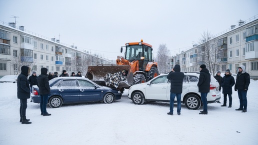 Снегоуборочный трактор "восстал" и снёс три машины на Парнасе