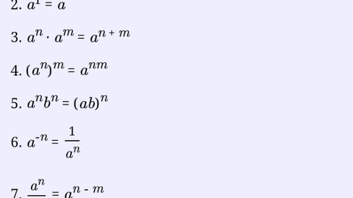 Не буду писать много лишнего, сразу начнем. Для начала, что такое степень простыми словами? Степень это количество раз которое надо число умножить само на себя. Например: 2² тоже самое, что 2*2. Для решения примеров со степенью понадобятся формулы: Буду брать маленькие цифры, что бы было понятнее. 1 случай: 2⁰ По первой формуле это равняется 1(это надо запомнить). 2 случай: 2¹ Число в первой степени равно самому себе. 3 случай: 2²*2² В этом случае надо степени сложить, а 2 оставить. 2²*2²=2⁴ Рассмотрим ещё случай с умножением...