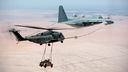 На деле, "труба" - это телескопическая приемочная штанга для дозаправки машины в воздухе. В походном положении она выглядит не столь внушительной, но в глаза все равно бросается: В основном, оборудование для дозаправки в воздухе устанавливается на транспортники и вертолеты для спасательных операций. К примеру, вовремя отдельных эпизодов войны во Вьетнаме в небе постоянно находились спасательные вертолеты для эвакуации раненных солдат США. Это позволяло им быстрее реагировать на запросы о помощи...