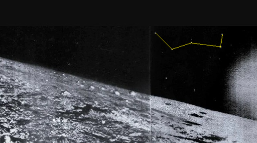Основной снимок Видите точечки на фоне черного неба? Целый ряд интересующихся темой Аполлуниады читателей, в основном в группе "немогликов", утверждают - что это звезды. Звезды так звезды - не будем спорить. Только наиболее яркие звезды на земном небосводе образуют характерные рисунки - созвездия. С развитием астрономии за каждым созвездием "закрепили" свой кусочек неба, чётко обозначив границы. Пунктирные линии - это границы созвездия. Самые яркие звезды иногда, на картах начального уровня, соединяют линиями, что бы лучше и быстрее запомнить рисунок и быстро ориентироваться на небе...