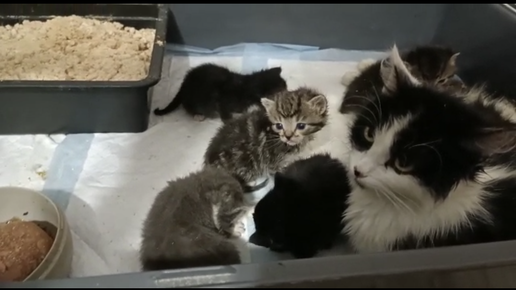 Вы помните, недавно к нам попала кошка с шестью котятами Кошечка была очень истощена, но кормила их из последних сил, до последней капли молока. Теперь они едят сами. А потом нам привезли ещё пятеро совсем крошечных малышей Малыши ещё не могли сами есть и Валя кормила их из соски, каждые три часа, это очень тяжело и они такие горластые когда хотят есть- мёртвого поднимут. Валентина посадила к ним кошечку, но молока нет. Но она их приняла, они пристроились, пригрелись и хотя бы спали спали спокойно, пытались сосать, но увы...