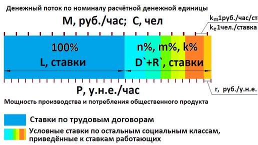 Выражение «Время-деньги» следует понимать буквально, так как расчётной денежной единицей в границах Общности является «расчётный рубль» эквивалентный «человеко-часу». Если точнее, то календарному часу жизни одного гипотетического работающего на одной трудовой ставке человека при номинальной отработке, и имеющего средний по Общности размер заработной платы. Через размер дохода этого среднего работника размером 1 руб./час (календарный час) данное утверждение вполне определенно и однозначно наделяет расчётные денежные единицы свойством меры при товарноденежном обмене...