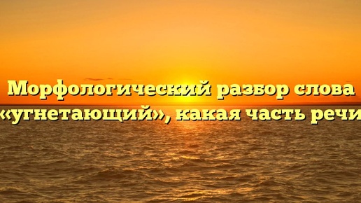 Морфологический разбор слова «угнетающий», какая часть речи Слово «угнетающий» – это причастие настоящего времени от глагола «угнетать». Производное слово причастие обозначает действие, которое возможно в текущем моменте времени. При этом оно имеет форму глагола, но способно функционировать и как прилагательное. В определенных контекстах, можно использовать причастие как сказуемое, что добавляет в предложение дополнительную лексическую информацию о времени действия...