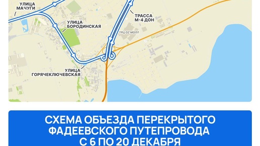 Движение по путепроводу на улице Фадеева временно ограничат. Проезд будет закрыт с 6 по 20 декабря. Во время действия ограничения будет проверена организация проезда на альтернативном маршруте по улицам Аэропортовской и Бершанской. 🚗 Что нужно знать автомобилистам: Объезд будет организован через трассу М-4 «Дон». Заехать в аэропорт можно будет только со стороны ТРЦ «ОзМолл». Для этого с трассы надо повернуть на улицу Аэропортовскую и уже по ней доехать до терминалов аэропорта. Выезд из аэропорта будет также через улицы Аэропортовскую...