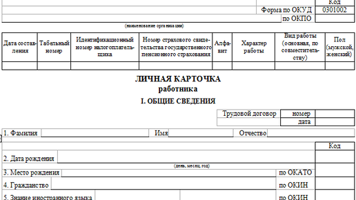 Зачем нужна унифицированная форма Т-2 Форма Т-2 утверждена постановлением Госкомстата РФ от 05.01.2004 № 1 и представляет собой личную карточку сотрудника, которая содержит информацию о том, кто он такой, когда родился, где живет, а также отражает его семейный статус, информацию об уровне образования и профессиональном стаже. Указанные данные вносятся на основании: С 2013 года применение унифицированных форм перестало быть обязательным, поэтому разработать бланк личной карточки работодатель может самостоятельно...