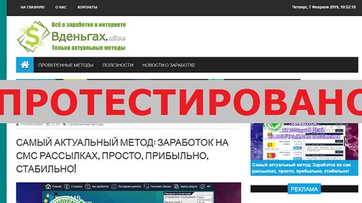 Сегодня нам прислали ссылку на блог о заработке вденьгах.SITE и методе «от 2000 рублей в день на смс рассылках». На сайте vdengah.Site в разделе Проверенные методы есть только одна запись. Она посвящена, как вы догадались, именно способу заработка на смс рассылках...
