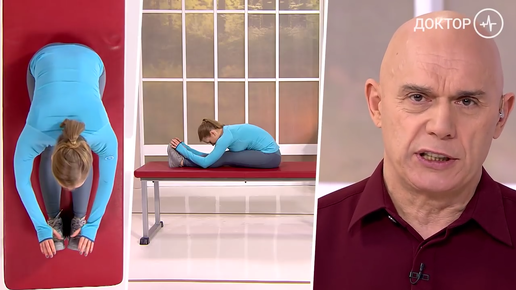 Основной комплекс упражнений при болях в спине от доктора и профессора Сергея Михайловича Бубновского. При появлении боли в спине не спешите пить таблетки. Делайте эти упражнения несколько раз в день, когда болит спина, и тогда необходимости в таблетках не будет. Растяжка позвоночника поддержит эластичность связок и поможет выровнять межпозвоночные диски. Упражнение 1