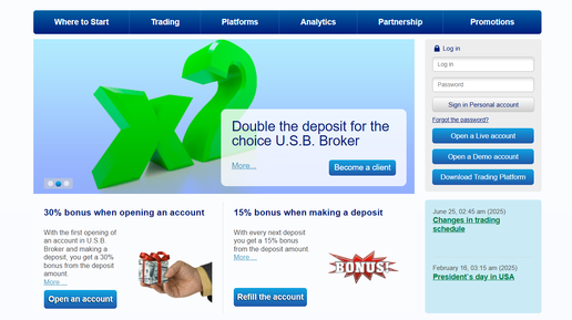 Проект usbmarkets com под названием USB Broker (или US B. Broker/USBMarkets) представлен как онлайн-брокер для торговли на финансовых рынках, с предложениями по валюте, акциям, товарам и активам. На своём официальном сайте компания публикует восторженные отзывы клиентов, уверяя, что работает надёжно и приносит доход. Однако при серьёзном анализе всплывают множество тревожных моментов, которые заставляют относиться к платформе крайне осторожно. Судя по доступной информации, нет подтверждений, что...