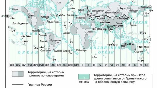 Поясная система счёта времени была предложена в 1884 г. Согласно этой системе весь земной шар был разделён по долготе на 24 часовых пояса (по числу часов в сутках), каждый из которых занимает примерно 15°. По сути дела, счёт времени по этой системе ведётся только на 24 основных меридианах, отстоящих друг от друга на 15° по долготе. Время на этих меридианах, которые расположены примерно посередине каждого часового пояса, отличается ровно на один час. Местное время основного меридиана данного пояса называется поясным временем...