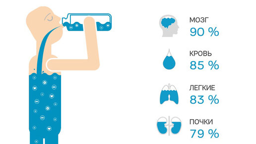 Примерно 60% массы тела человека составляет вода. Во взрослом мужчине весом около 70 килограмм примерно 42 литра воды. У женщин этот процент немного ниже - около 55% воды в теле. Почему в человеке так много воды Вода является основным компонентом человеческого организма, что связано с рядом важных функций, которые она выполняет:
