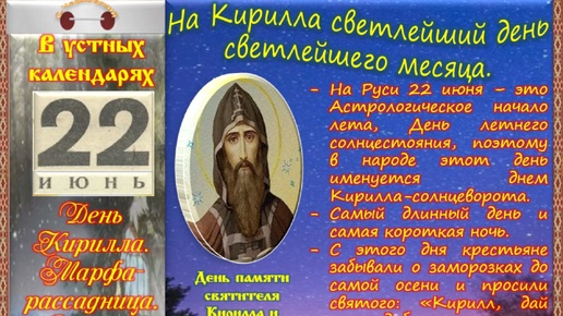 22 июня - Традиции, обычаи и поверья, связанные с этим днём. Все праздники, которые отмечаются в этот день в разных календарях.