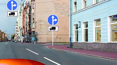 Рассмотрим ситуацию В каких направлениях Вам можно продолжить движение по левой полосе на грузовом автомобиле с разрешенной максимальной массой не более 3,5 т? 1)Только прямо 2)Прямо и направо 3)Прямо, налево и в обратном направлении Пояснение: Знак "Движение прямо или направо" и табличка "Вид транспортного средства" информируют...