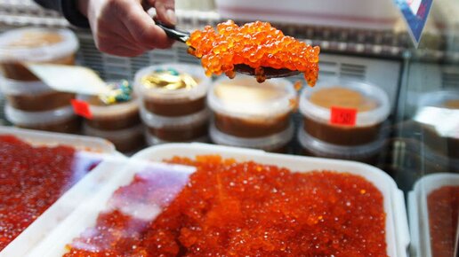 Выбираем красную икру. Купил настоящую красную икру. Показываю, что внутри железной банки
