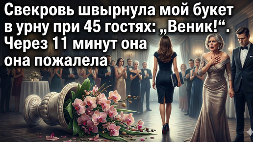 Свекровь швырнула мой букет в урну при 45 гостях: -Веник для кладбища!. Через 11 минут к ней подошёл администратор и тихо сказал одну фразу