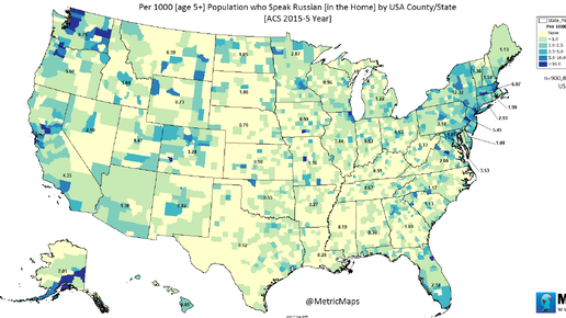 Конечно, потомки эмигратов из первых волн уже редко хорошо владеют языком и основу составляют поздние мигранты, но всё же, число американцев, назвавших русский языком домашнего общения, оценивается в 900 - 1000 тысяч человек. И это число более чем в 5 раз превосходит цифру 1980 года - тогда русскоязычных насчитывалось 173 тысячи...