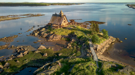 Эти кадры, снятые мной в красивейшем месте на побережье сурового Белого моря, теперь несут для меня двойную ценность. А как иначе, если буквально на следующий день после нашего отъезда из Рабочеостровска, я узнала пренеприятнейшую новость, что этой деревянной церкви больше нет. Она полностью сгоpела, не осталось ни бревнышка от былой красоты. Как же так? Я же еще вчера восхищалась этими потрясающими пейзажами, главным элементом которых и была эта церковь. А какие виды с высоты посылал нам летающий...