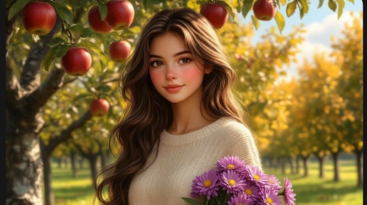 Осень – это не просто время года, это состояние души. Багряные листья, тихая грусть дождей, аромат яблок и терпкий запах увядающей листвы… Все это вдохновило меня представить осенние месяцы как прекрасных девушек, созданных с помощью нейросети. Я попробовала уловить настроение каждого месяца, его уникальный характер, его цветовую палитру. И вот что получилось: Сентябрь: Теплое солнышко еще ласково греет, но в воздухе уже чувствуется дыхание осени. Девушка-сентябрь нежная и лучистая, с букетом фиолетовых астр и корзиной сочных яблок...