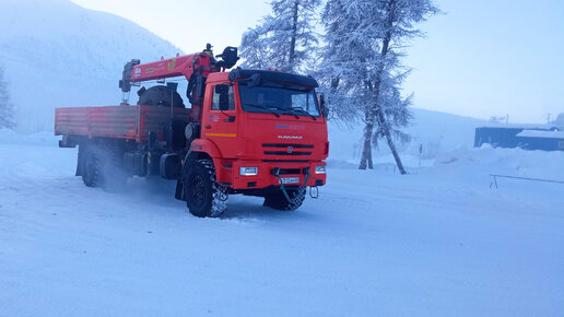 Этот Камаз оборудованный краново - манипуляторной установкой пережил многое, в данный момент установка работает только с правой стороны объясняю почему: с левой стороны выдавило манжеты в цилиндре выдвижения опоры. Искали в городе Магадане таких запчастей нет да и водитель на манипуляторе работает наездник. Почему наездник? Да потому что за руль Камаза он сел впервые три года назад, в первый месяц работы у Камаза побежал гидроусилитель руля. Не смотря на то что весь залитый дикстрон выбежал, он продолжал ездить пока не приехал его сменщик...