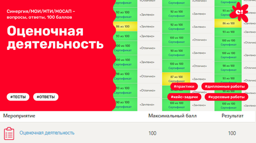 Оценочная деятельность (Синергия/МОИ/МТИ/МОСАП – вопросы, ответы, 100 баллов)