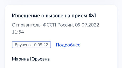 За два года «сотрудничества» с судебными приставами «Извещение о вызове на прием ФЛ» я получила 3 раза. И если первые два, я как «ответственный» должник приходила на встречу к своему судебному приставу (отчасти со своими корыстными целями о чем я с вами делилась), то после получения третьего - забила и не пошла. И так «Извещение о вызове на прием ФЛ» - это ничто иное как «Повестка» в которой пишется о том что судебный пристав хочет увидеть должника, а так же адрес, дата и место встречи (в основном по месту нахождения территориального отдела ФССП в приемные дни и часы)...