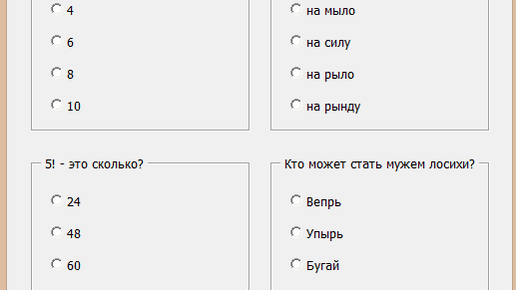 Тема не новая, но если не знаешь лучше посмотреть по данной теме есть интересный ресурс https://lumpics.ru/how-to-create-a-test-in-excel/ где дается подробно как сделать Недостатки данного метода тестирования открытость формул, локальное тестирование (если сделать аналогичные тесты в облачных таблицах то одновременное тестирование тоже не получится) можно сделать сложнее в Excell через форму и VBA Код VBA Private Sub CommandButton1_Click() Dim arr3 As Variant, n As Byte, i As Byte 'Присваиваем...