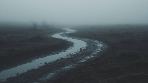 Начало здесь Туман стал гуще, почти осязаем — словно вязкая пелена, липнущая к коже, забивающаяся в ноздри сырым, затхлым духом болота. Влажная глина хлюпала под ногами, налипая на подошвы тяжёлыми комьями, будто пыталась удержать, не дать уйти. Девушки вышли на дорогу — всё та же безмолвная пустота и туман, в котором то и дело мерещились шевеления, будто что‑то скользило меж белёсых струй, не желая показываться целиком. Внезапно сквозь молочную муть проступил силуэт — Проводник. Он возник без звука, без малейшего шороха, словно выткан из самого тумана...