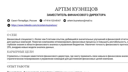 Пример резюме заместителя финансового директора 2025 - Как составить
