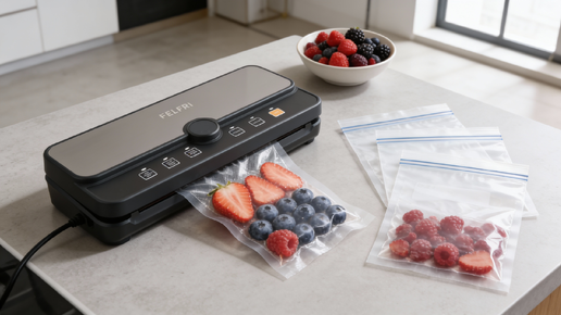 Покупаете продукты «про запас», но часть портится? Хотите убрать запахи в морозилке и освободить место? Разберём какой вакууматор купить для дома, чтобы еда хранилась дольше, вкус не терялся, а пользоваться было просто каждый день. Смотреть витрину FELFRI с действующими ценами → Подходит: Не подходит: Правило 1. Сила и режимы. Для дома важнее не «ватты», а стабильная работа с сухими и влажными продуктами. Ищите модель с режимами для мяса/влажных и для сухих. Так вы не «высосете» соки из котлет и не промнёте ягоды...