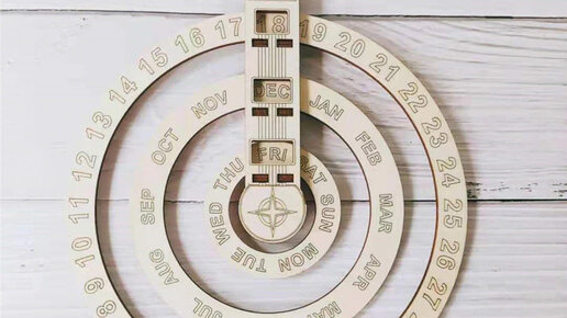Деревянный настенный вечный календарь Настенный круговой «вечный» календарь состоит из 3-х кругов с фиксацией на каждой дате, месяце и дне. Материалом служит дерево, вырезанное на ЧПУ с лазерной головкой, что говорит о его качестве. Подходит для любой комнаты - кухни, гостиной, спальни, столовой, детской комнаты, библиотеки, офиса и т.д. Хороший подарок для взрослых и детей на день рождения.
