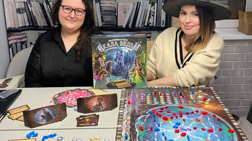 Как-то давно я читала, что маэстро Книция, выпустивший несколько сотен настолок, не играет в чужие игры. Не знаю, правда это или нет, но тем удивительнее для меня, что «Скала ведьм» Книции во многом похожа на игры Фельда. В игре вы… да по сути не очень важно, чем вы занимаетесь, потому что сеттинг мог бы быть любой. Вы помещаете жетоны в котёл, чтобы совершать действия на игровом поле. Чем больше действий одного типа «соприкоснулось» в котле — тем ваше действие стало сильнее (если вы играли в «Костёр», то наверняка понимаете, о чём речь)...