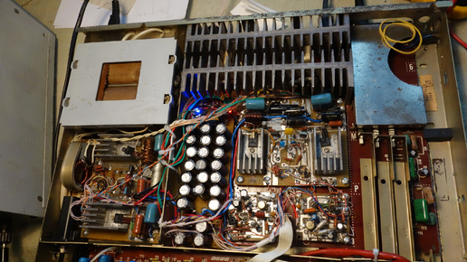 Быстро сказка сказывается, но не быстро дело делается. При демонтаже радиодеталей с платы основного усилителя проблем не возникло. Порадовала качественная пайка, перемычки и резисторы кто то монтировал, а скорее монтировала, с огромной любовью. Ножки еле разогнул. И собрал ваккумотсосом припой. Под монтаж новых выходных транзисторов сделал дополнительные отверстия в плате. Если кто то скажет неаккуратно – так это был не мой день. Для С5198 слюдяные прокладки делал сам. Пасты положил больше нормы – поверхность радиатора не шлифована...