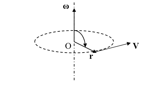 Связь между направлениями векторов линейной и угловой скорости определяется векторным произведением: V = [ ω, r ] Вектор угловой скорости направлен по оси вращения таким образом, что из конца вектора линейной скорости кратчайший поворот от вектора угловой скорости ω к радиусу – вектору r направлен против часовой стрелки: Можно воспользоваться правилом буравчика (правого винта): если головка винта совпадает с направлением вращения, то поступательное движение острия покажет направление вектора угловой скорости...